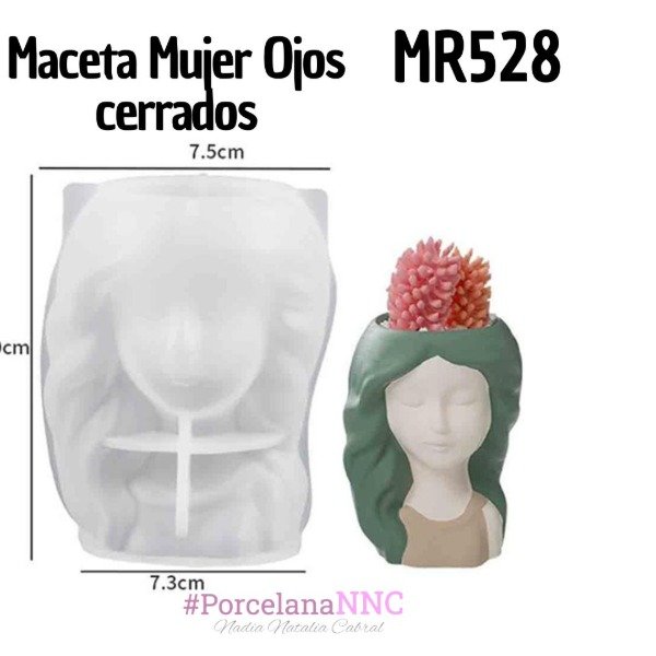 MOLDE SILICONA PARA MACETA CABEZA MUJER OJOS CERRADOS